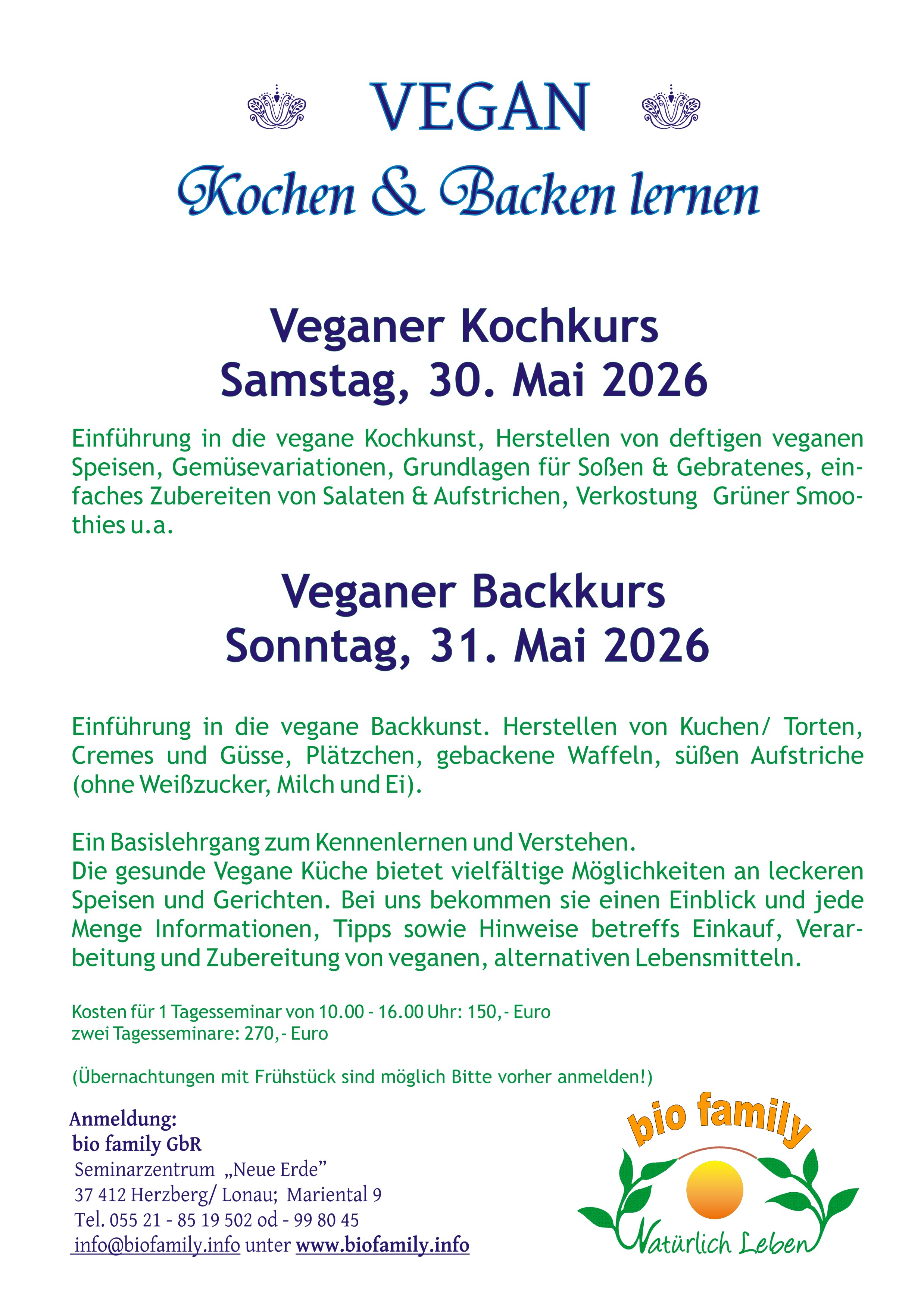 ~ Tagesseminar (nur Samstag oder nur Sonntag): 150,- €